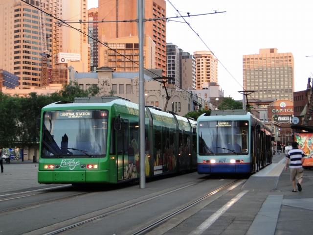 ライトレールはかつての路面電車の路線が復活したわけではなく、大部分はダーリンハーバー周辺の湾岸地区を再開発するにあたって、