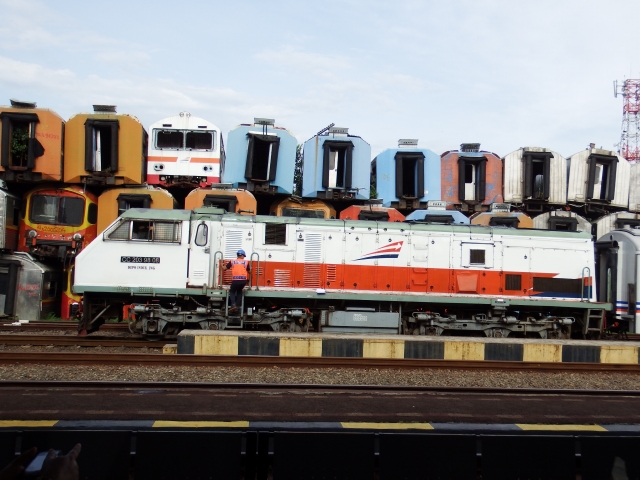機関車は早々に機回しを行い、ジャカルタへ戻るための発車準備が完了します。