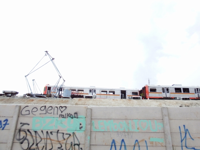 ジャカルタで屋根まで満載の人を運んだ電車たちが永遠の眠りについています。