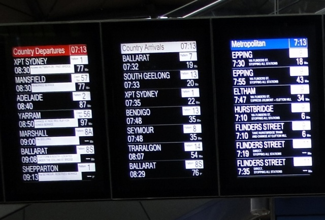 シドニー行きXPTや州内の中・長距離を運行するVLine、そして近郊列車メトロと様々な列車が発着します。