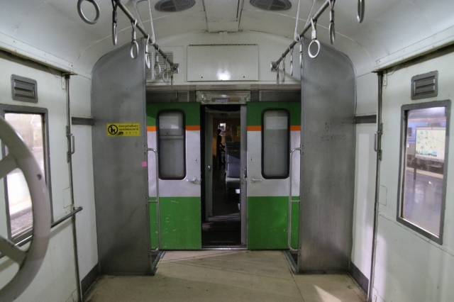 タイ国鉄の低いプラットホームに合わせるため、本来の乗降扉は締め切られています。