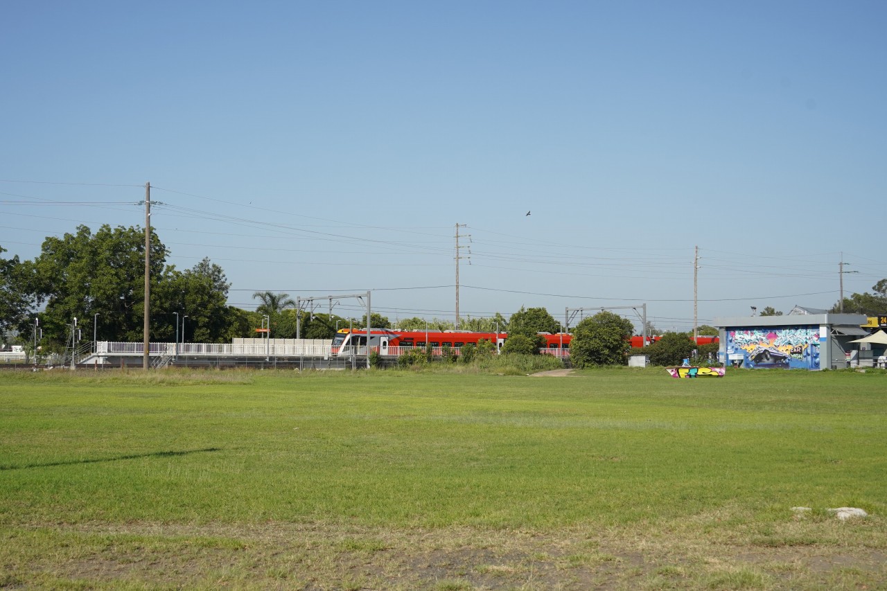 I moved around to the eastern side of Clarendon Station. The R set can be seen even from a small park set back from the line.