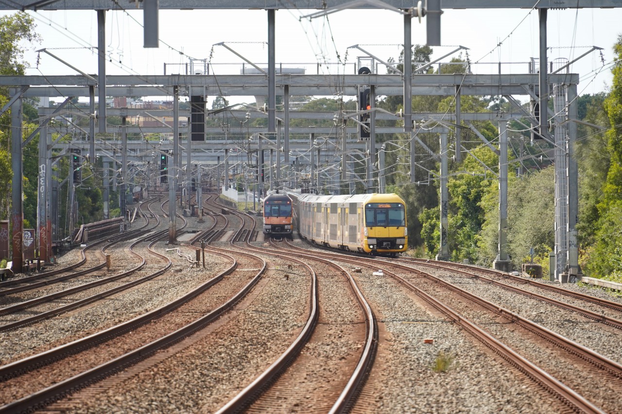 I quickly left the heavily crowded Central Station and headed to Summer Hill to photograph the Blue Goose heritage-liveried set, which was scheduled to depart Central at 10:00 am and run empty to Flemington Depot. From the Central-bound platform at Summer Hill, you can overlook the six-track main line, so if another train happened to run alongside, it would make for an excellent photo opportunity.