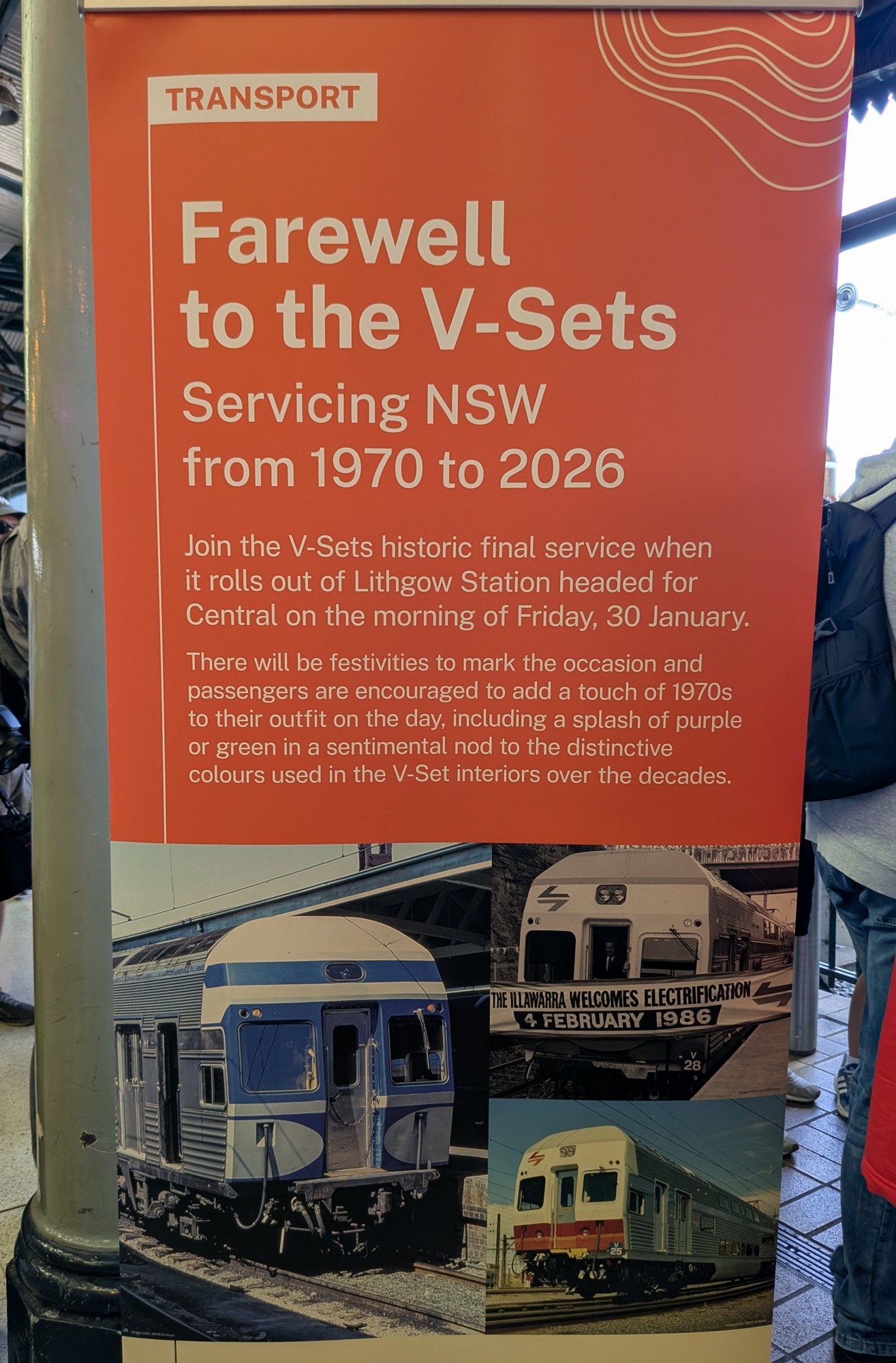 シドニーから到着した電車はそのまま回送となり、折り返し乗車することはできませんでした。そのため、最後のV28編成を撮影しようとする鉄道ファンでホームは大いに賑わいました。鉄道職員に加え警察も派遣されていましたが、リスゴーでは大きなトラブルが発生することはありませんでした。