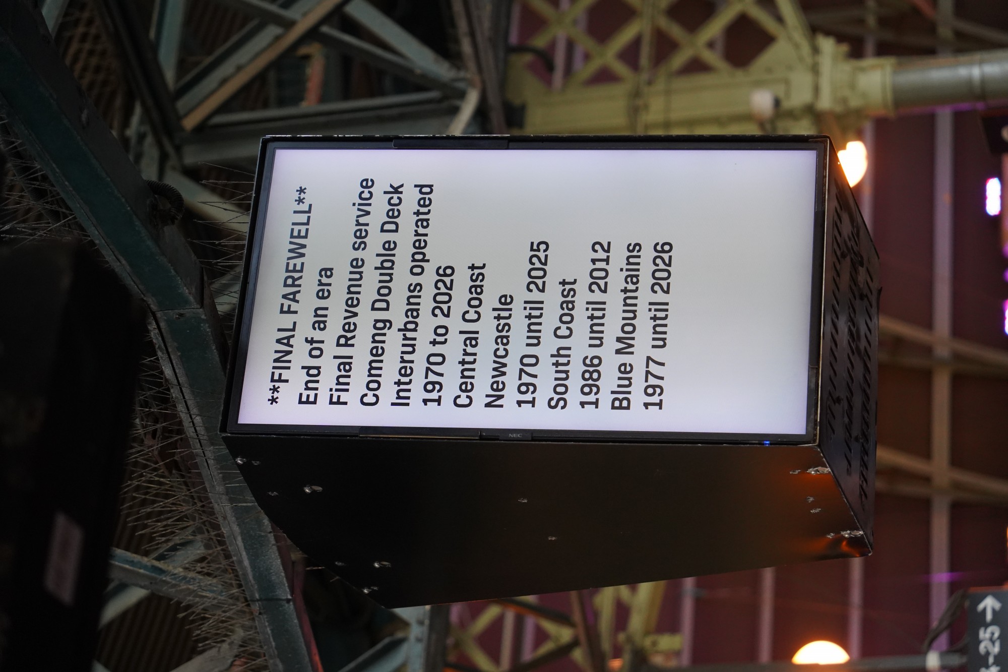 しかし、セントラルまであと約80kmという地点で車軸の熱異常が検知され、この列車はスプリングウッドで運転打ち切りとなりました。その後、バリーハイツ駅で後続のラストラン列車に追い抜かれ、結果的に少し寂しい最後となってしまったようです。